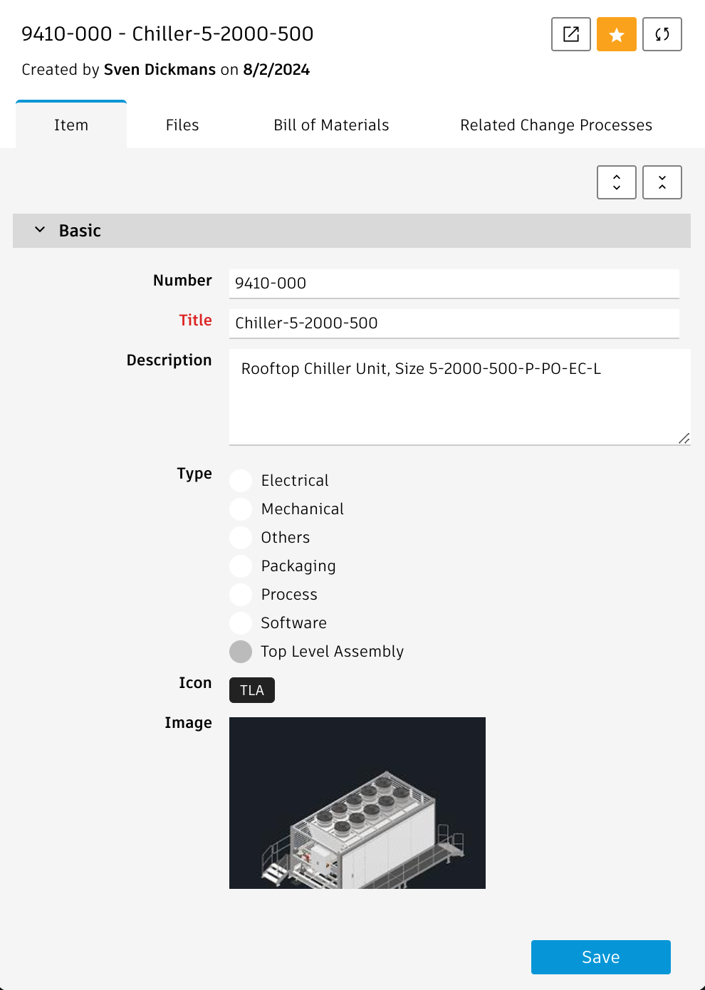2. May 2024Enhancement Users can now switch between 3D and 2D viewables within the viewer if given files exist in the item's attachment tab and if this feature has not been disabled for the given user with setting selectFile