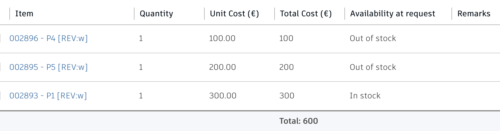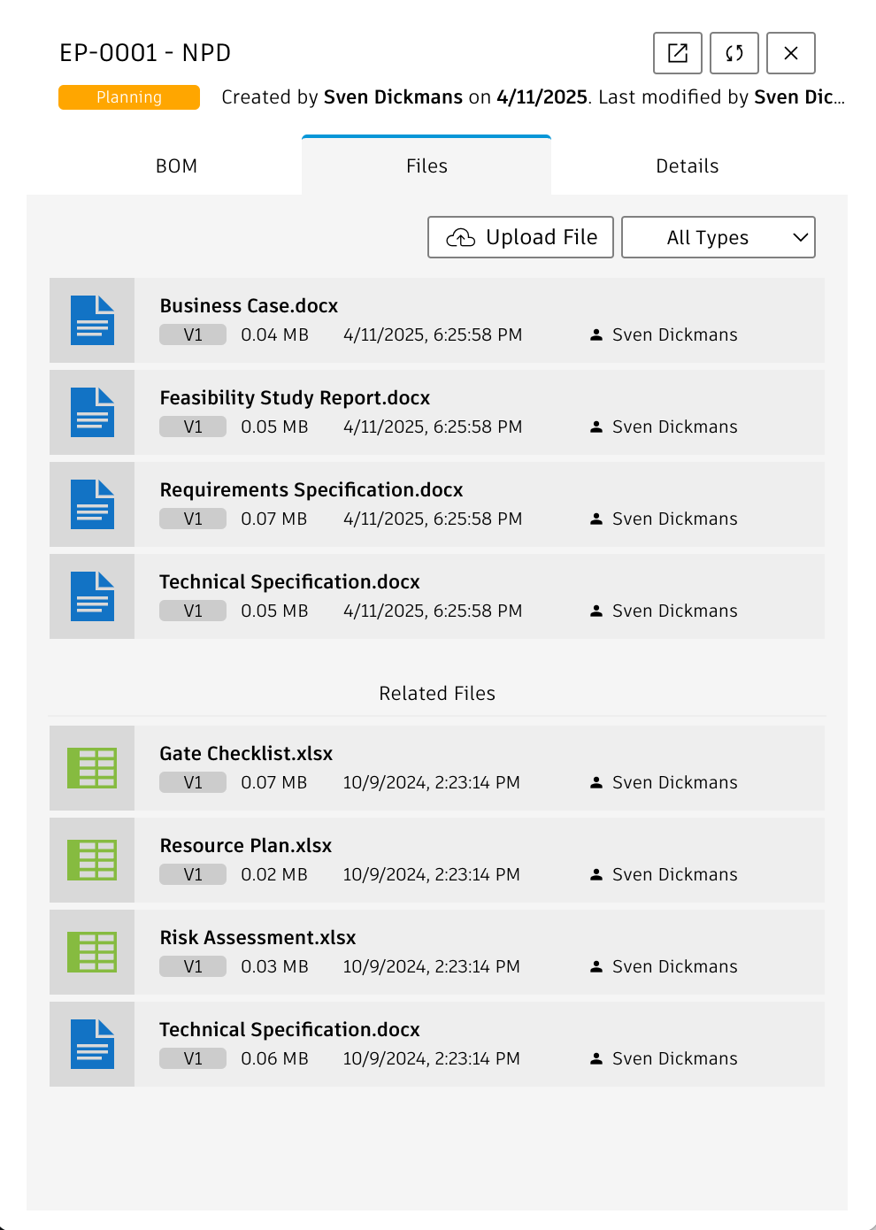 Users can browse the list of active Engineering Projects and navigate to the project's BOM in order to locate a BOM item of interest. When selecting a project, following details will be shown: