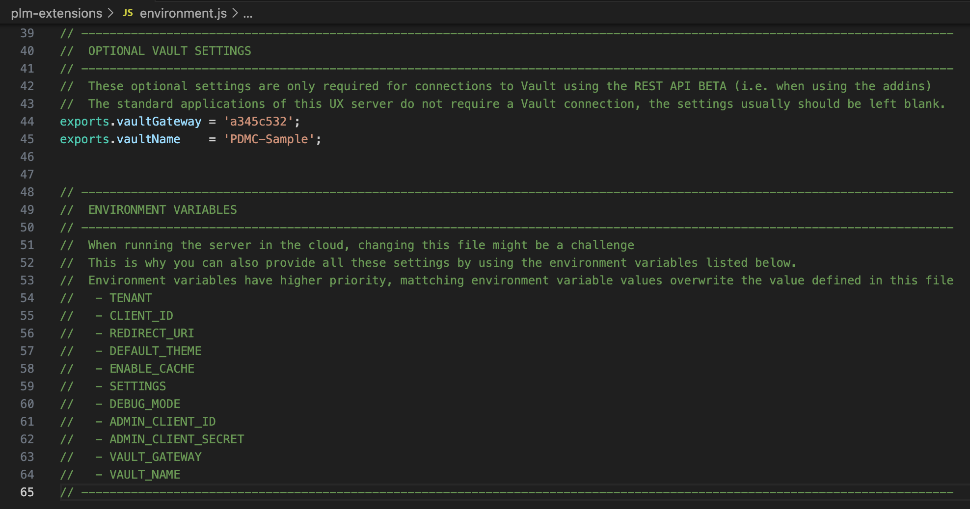 In order to use these addins with the PLM Desktop Extensions mentioned above, you must provide bour your Vault Gateway and Vault Name in your environment file.