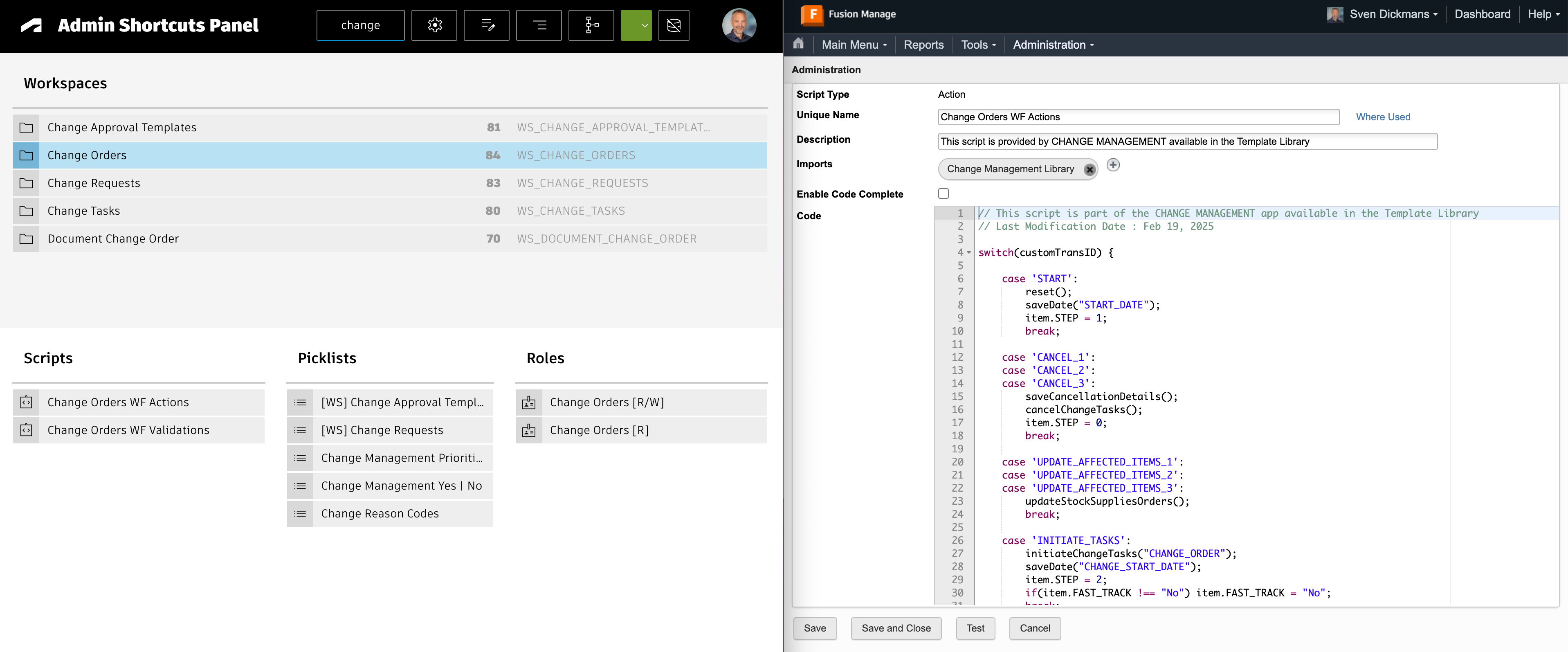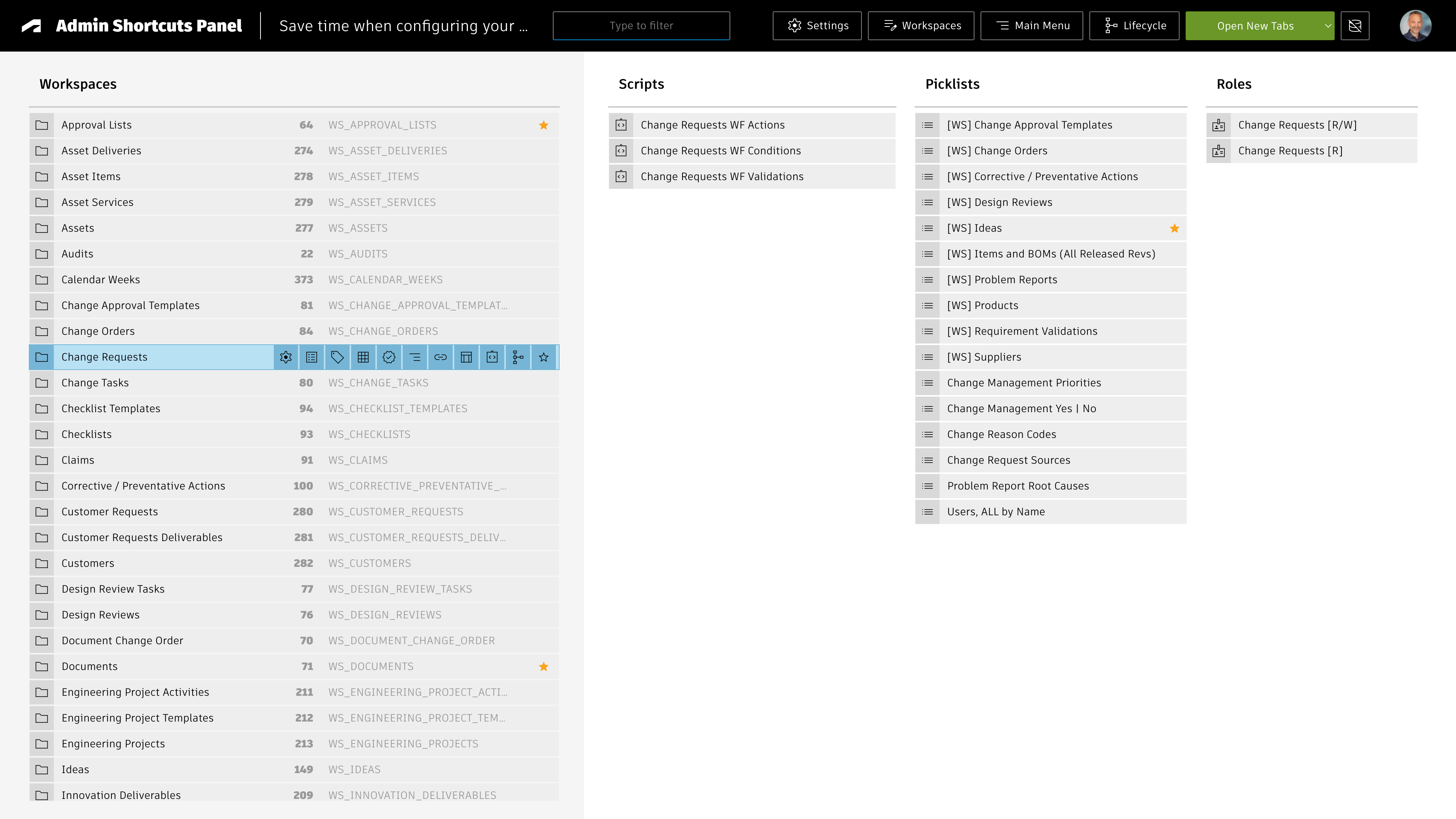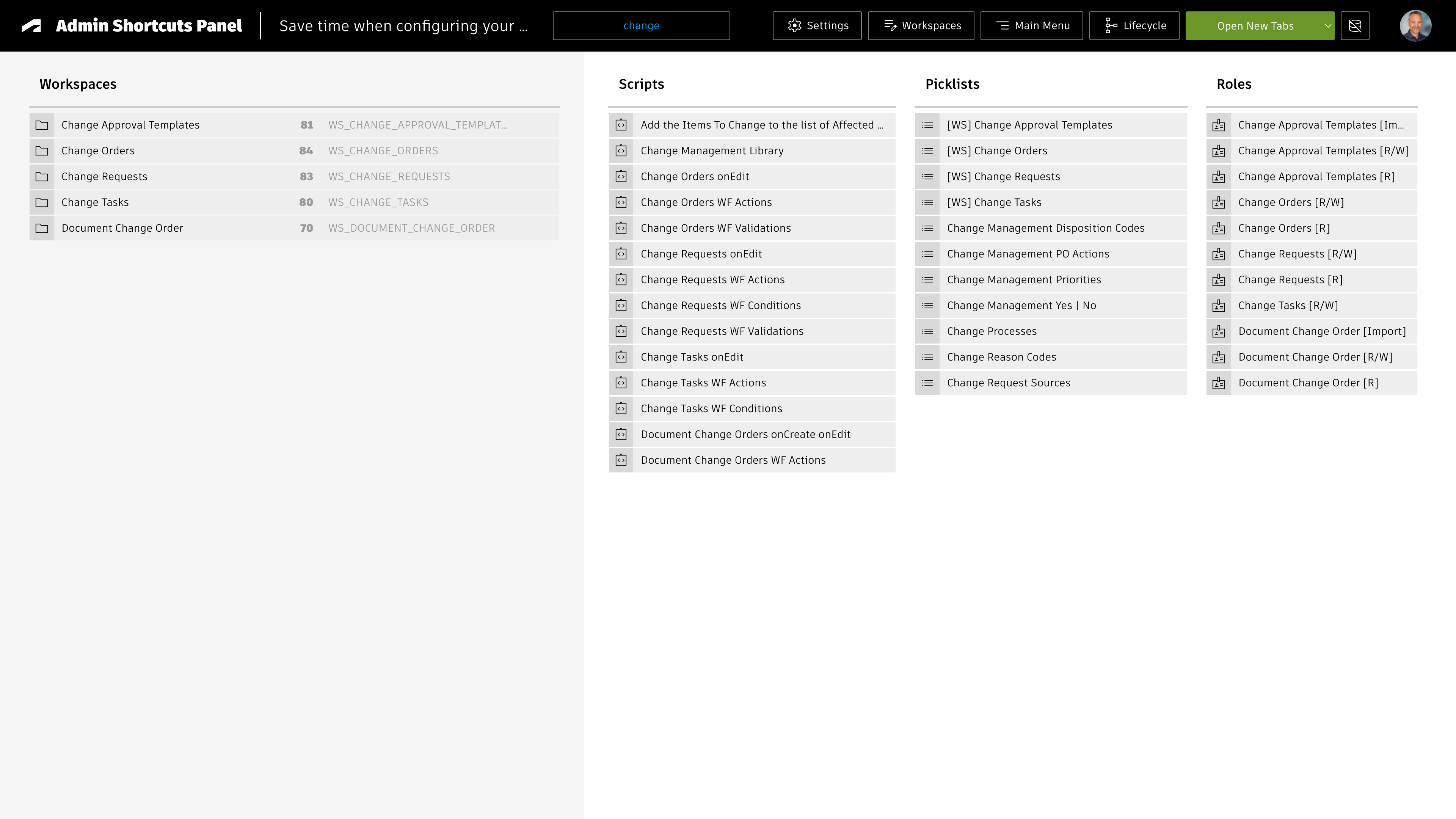 Users can access their My Outstanding Work list in this panel. It will display all tasks of all Change Management workspaces. By clicking a process, users can review more details and provide feedback using Workflow Actions.