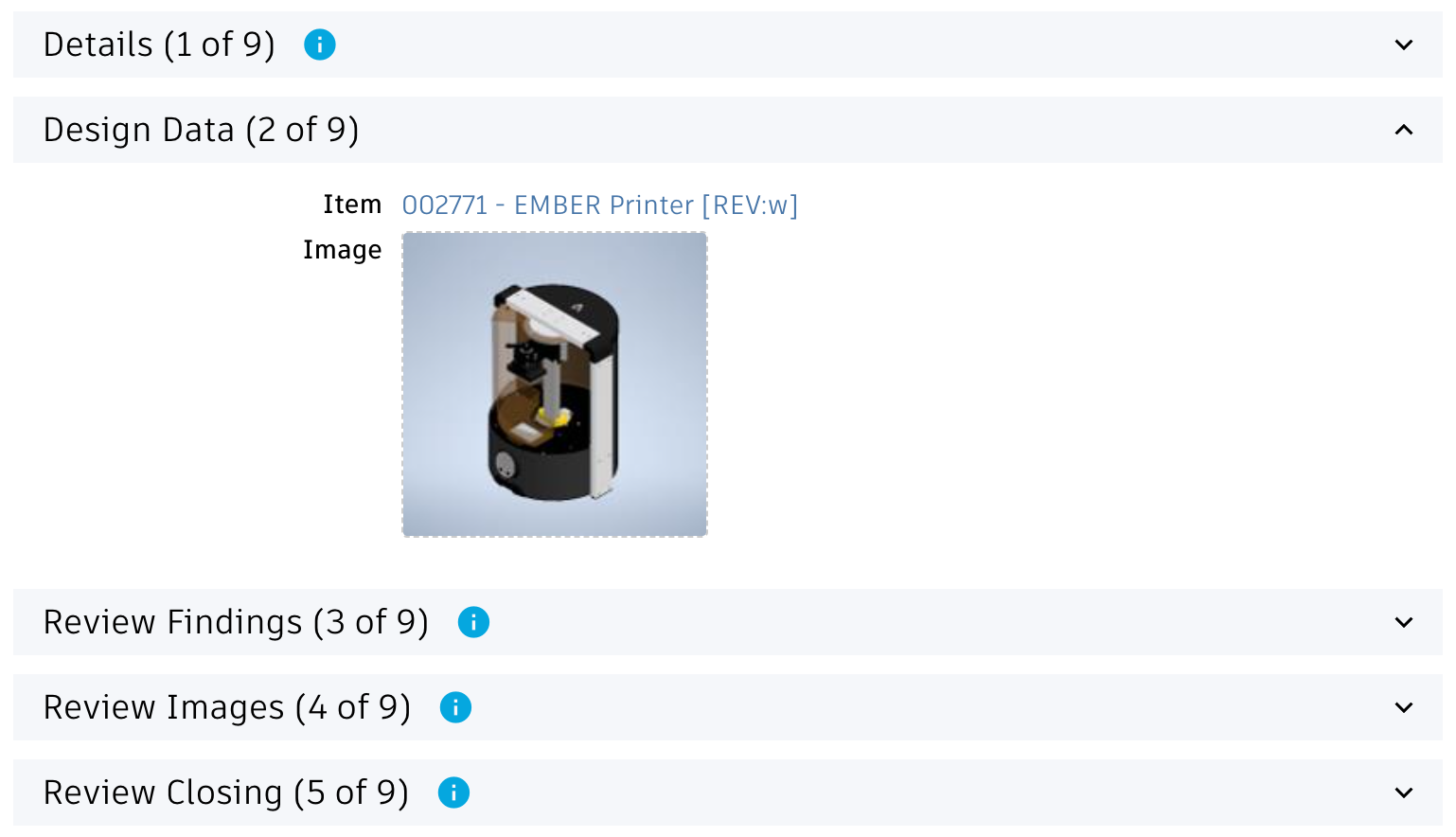 By passing a part number or a dmsId with wsId, users can access information of the related item in PLM. This panel includes the details page and files tab in edit mode. Users also can navigate the given BOM and Related Change Processes. Users also can use the favorite toggle and access the given item in the PLM native user interface.
