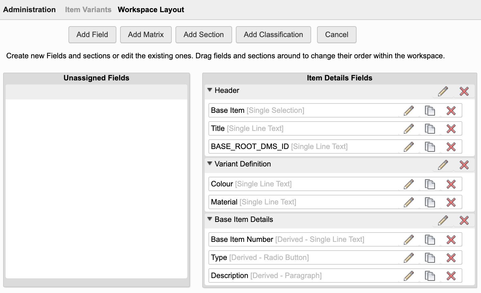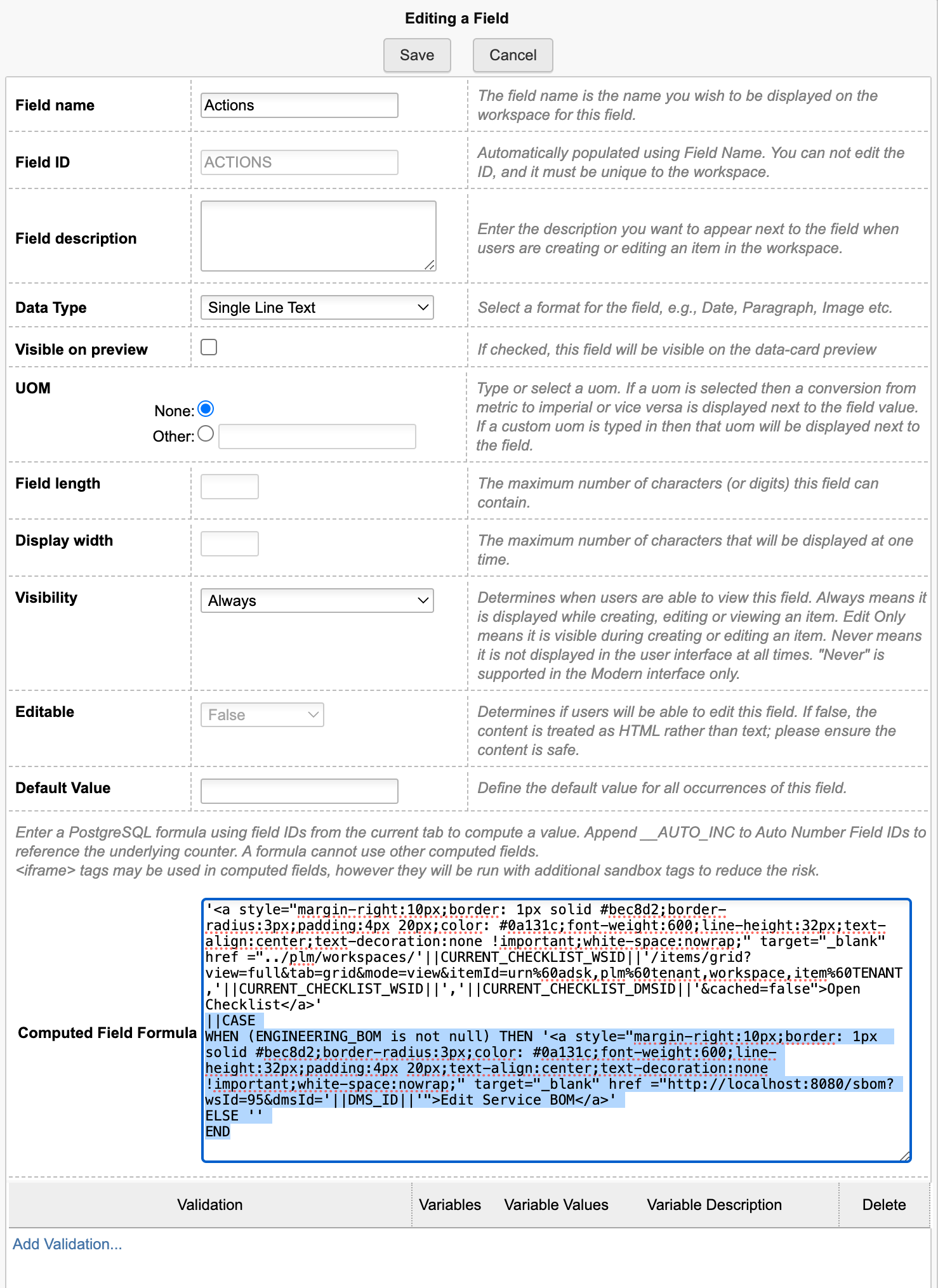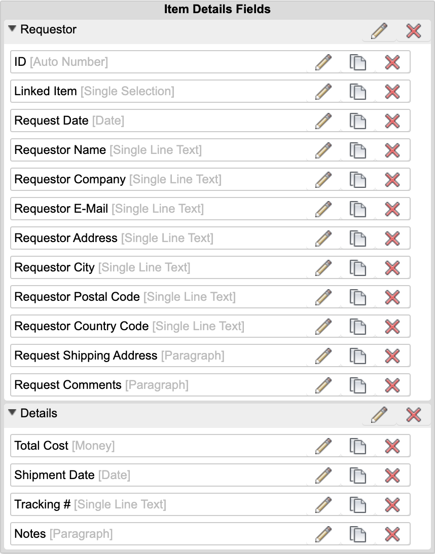 item.fieldsEx [ 'ACTIONS' ]Defines fieldIDs to exclude in the Item Details page. Leave this array blank to show all fields.