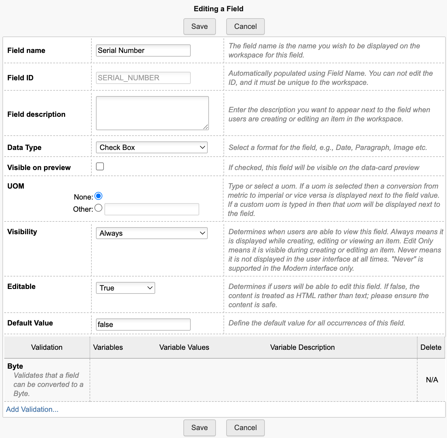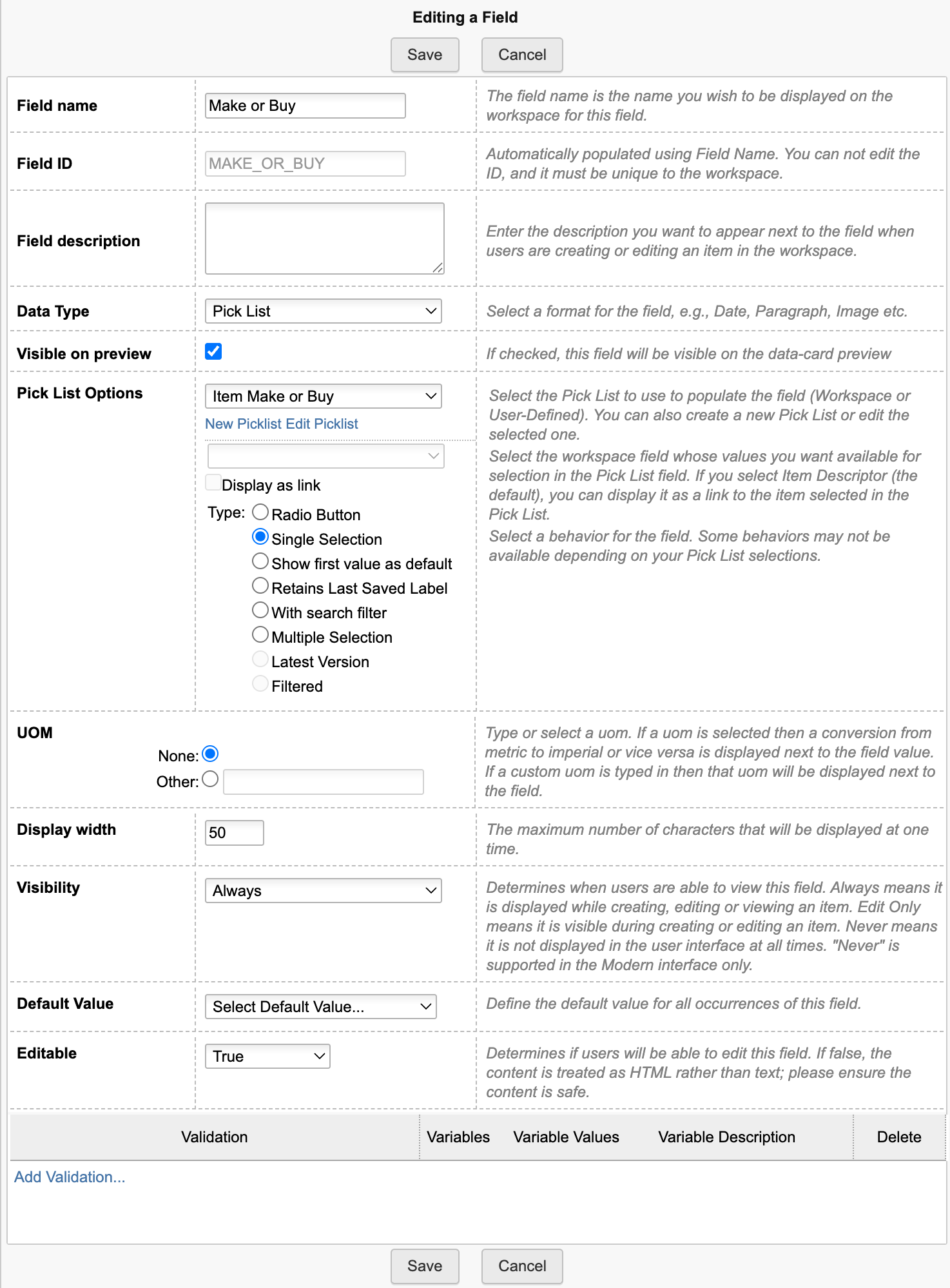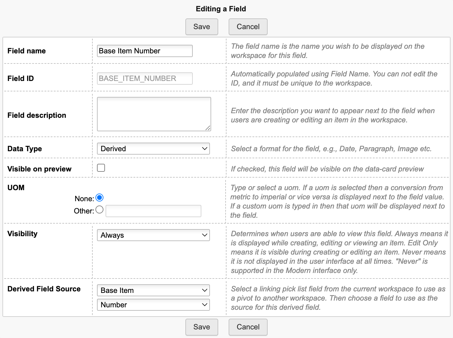 item.fieldsEx [ 'ACTIONS' ]Defines fieldIDs to exclude in the Item Details page. Leave this array blank to show all fields.