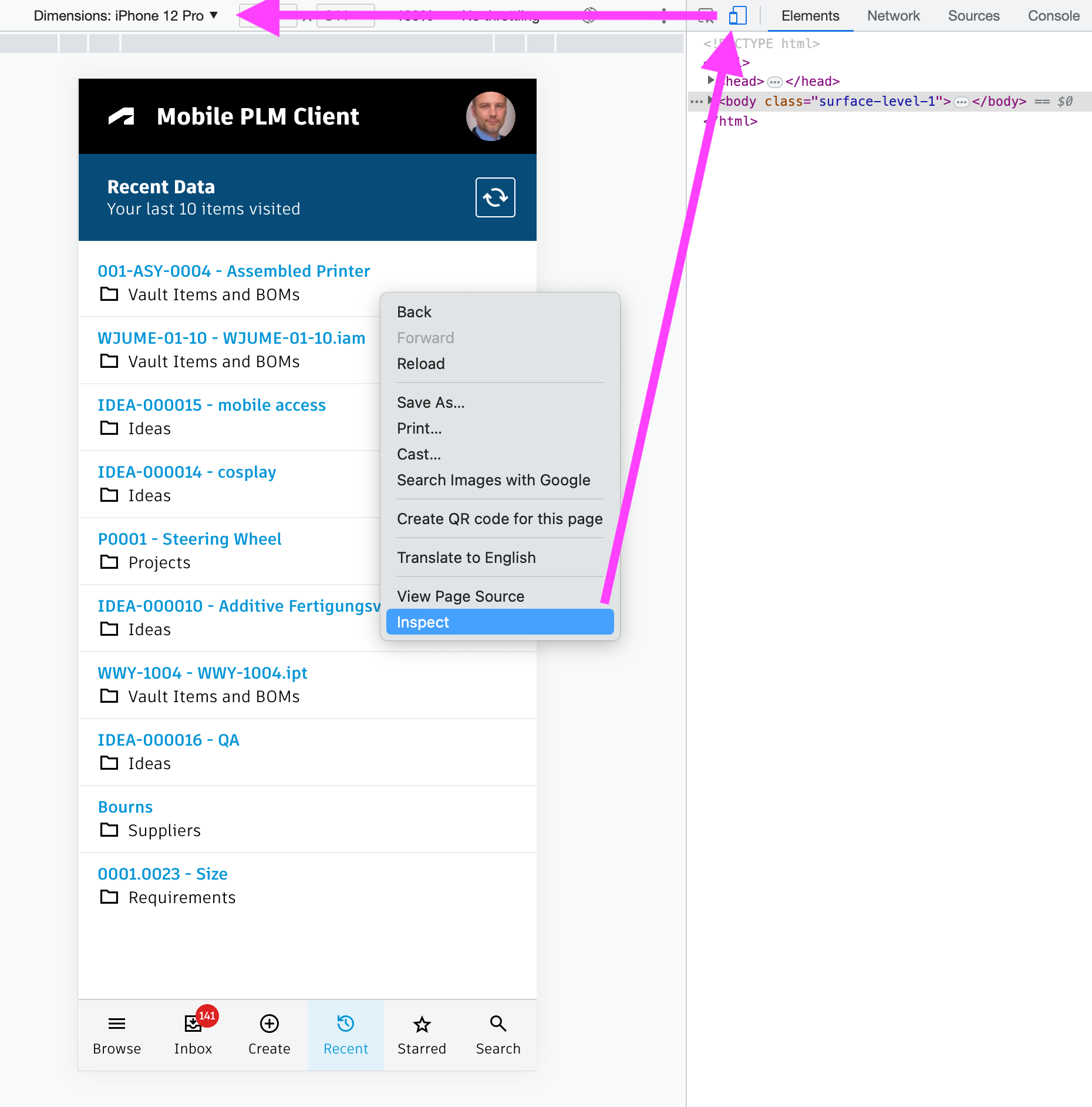 Provide quick access to latest product data in PLM using a very basic frontend for casual users, working well on tablets