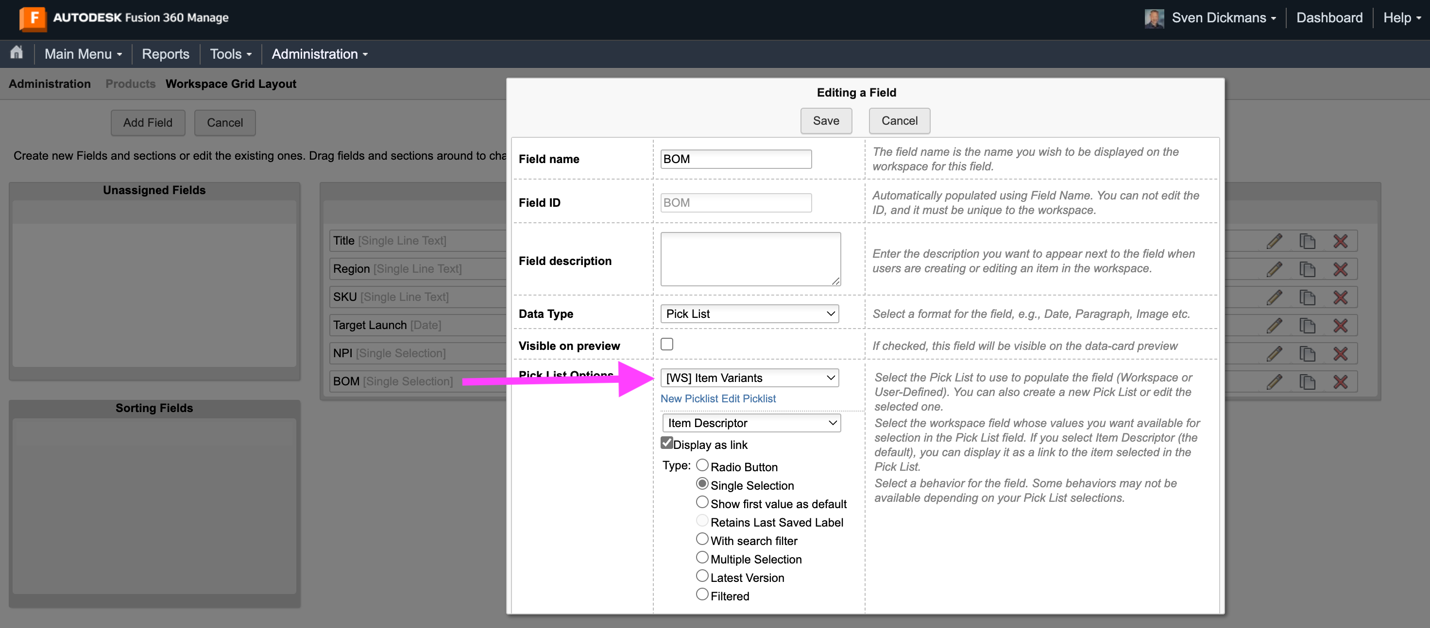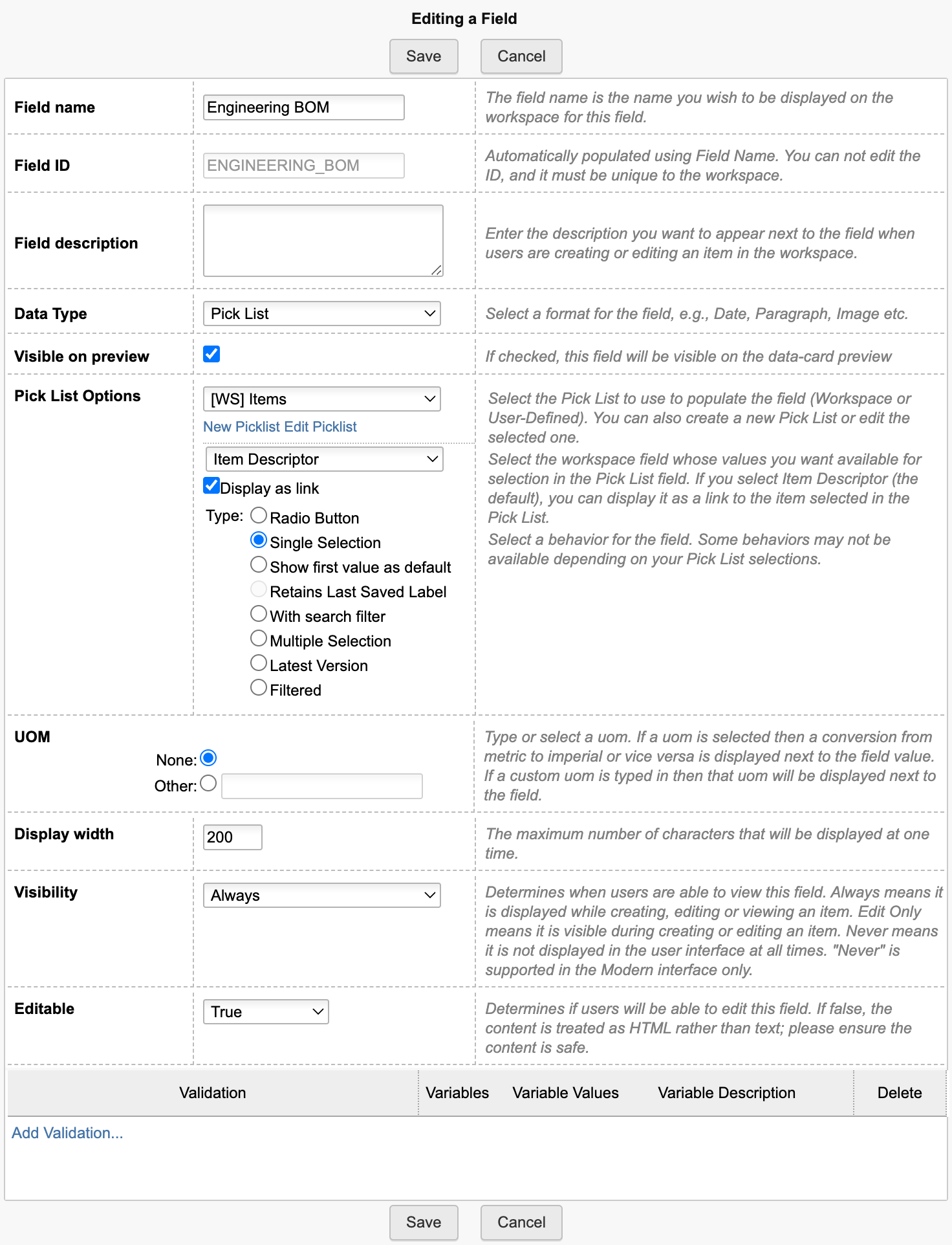 projects.fieldIdBOM 'DELIVERABLE_4'The fieldId of Engineering Projects that stores the link to the Engineering BOM